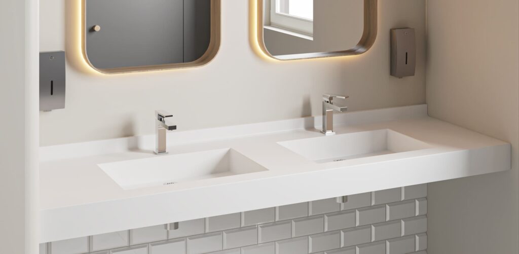 Description produit Le plan-vasque ARAGONITE est un modèle autoportant à la façade avancée, conçu pour une implantation en niche peu profonde, idéale dans les espaces restreints ou les configurations spécifiques. Fabriqué en SolidSurface pleine masse, il associe résistance, hygiène et douceur au toucher. Sa cuve ovale, soudée et parfaitement intégrée, assure un rendu homogène et…
