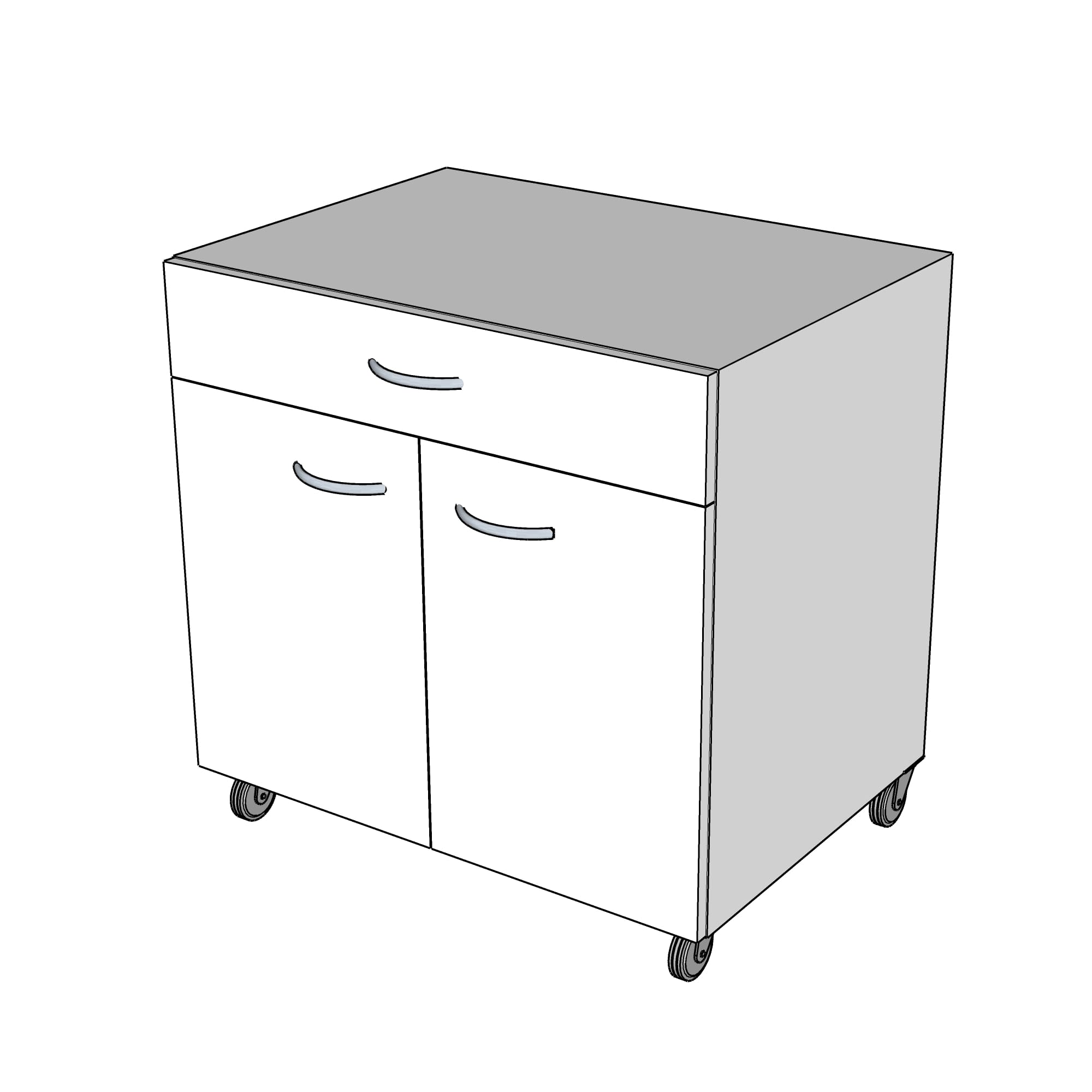 Meuble roulant L800mm, 1 tiroir, 2 portes