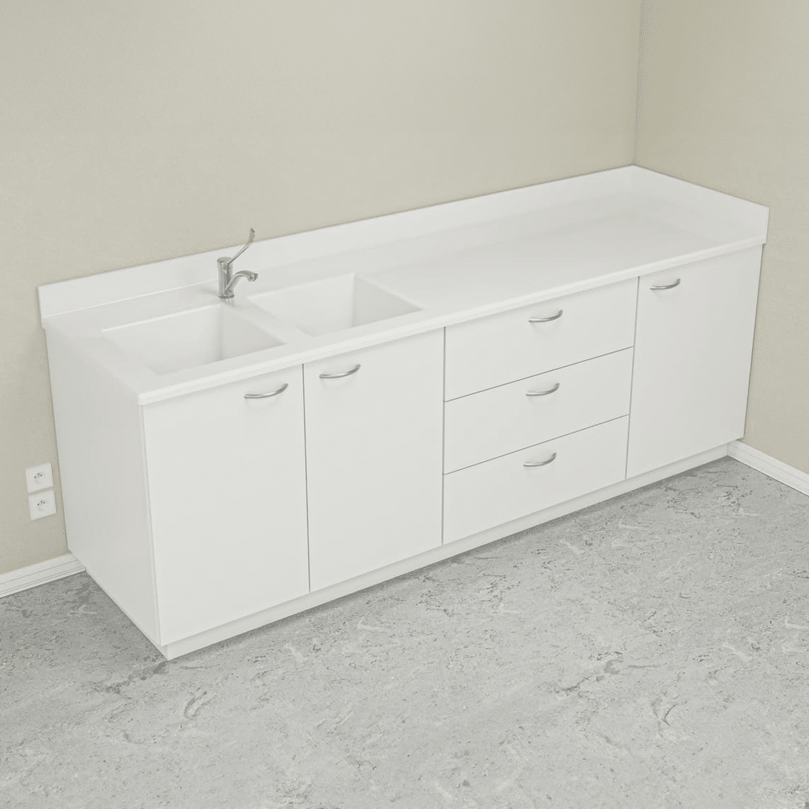 Toujours réalisée en résine minérale 100% acrylique, la paillasse offre un excellente résistance aux produits chimiques et à l’humidité, garantissant durabilité et performance dans le temps.