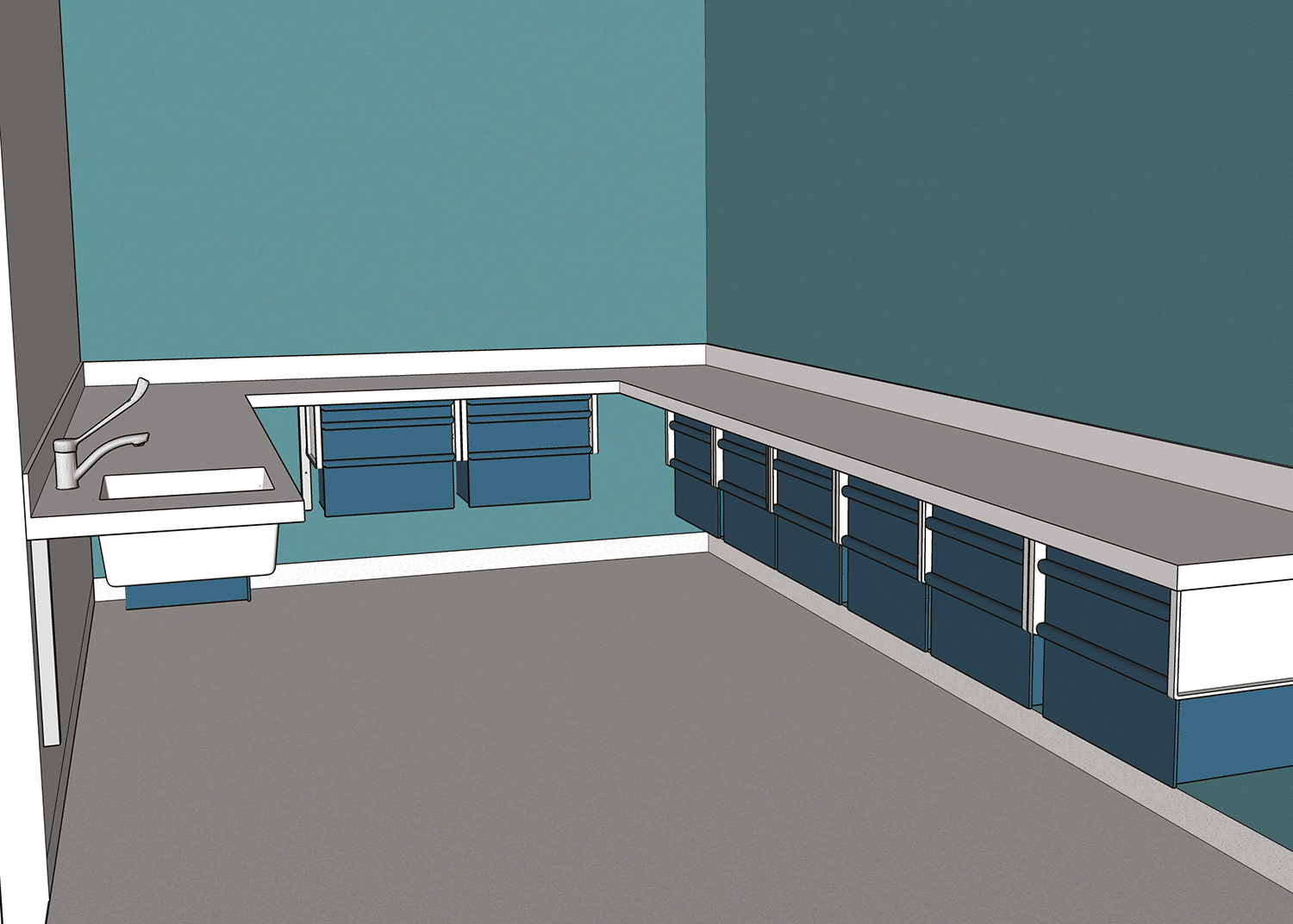Rangements sous plan. Possibilité d’intégrer des blocs tiroirs