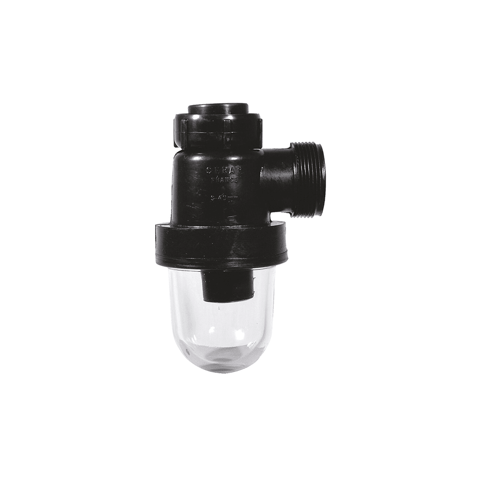 Siphon en polyéthylène avec culot en verre. Garde d’eau de 65 mm.