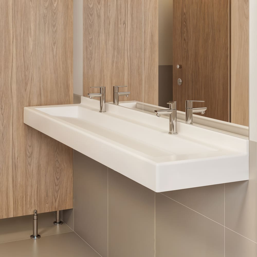 Le plan-vasque AGATE est particulièrement adapté pour une utilisation intensive dans des lieux avec beaucoup de passage (Sanitaires de bureaux, vestiaire, WC public ou aires d’autoroute mais aussi les sanitaire de centres commerciaux…). Adaptez ce modèle selon vos envies, sans compromis !