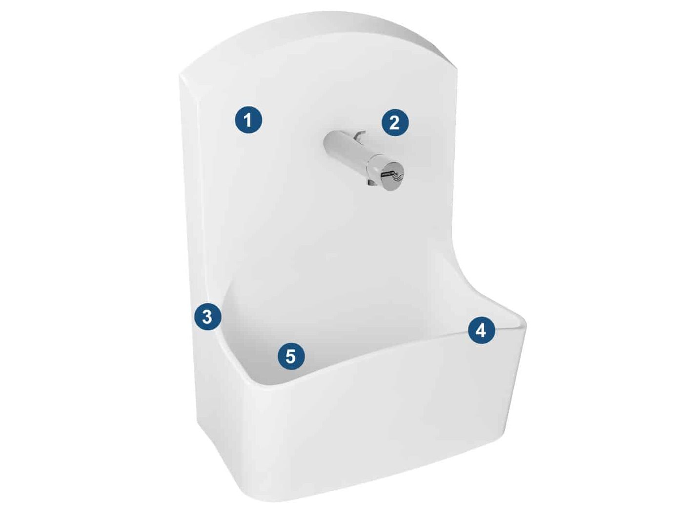Aucune zone de rétention d’eau sur l’ensemble du lave-main. Absence totale de joint pour faciliter le nettoyage et la désinfection